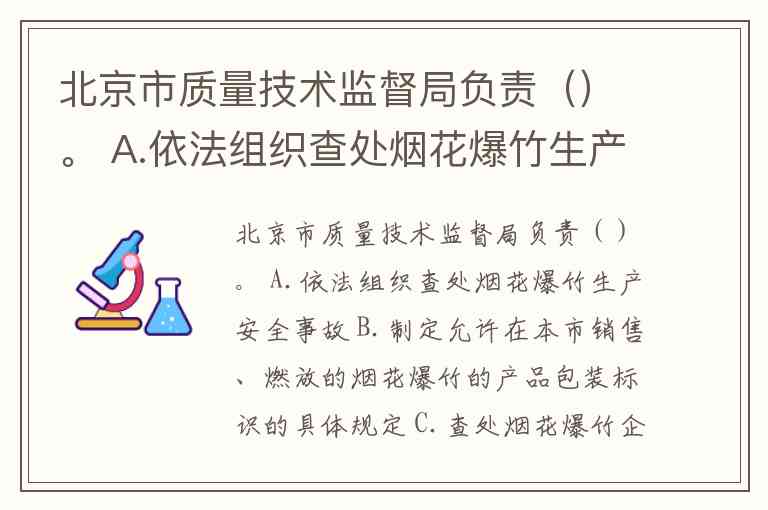 北京市质量技术监督局负责()。 A.依法组织查处烟花爆竹生产安全事故 B.制定允许在本市销售、燃放的烟花爆竹的产品包装标识的具体规定 C.查处烟花爆竹企业采购、销售非本市规定品种和规格的烟花爆竹的行为