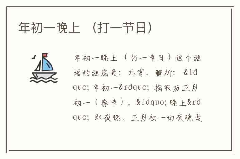 但谜面“年初一晚上”可能别解为 “春节(初一)之后的第一个重要夜晚”,即元宵节(正月十五夜)。