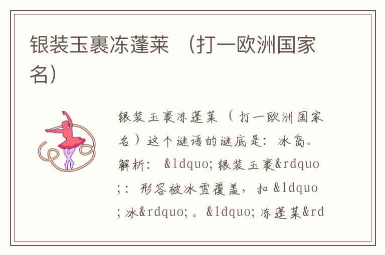银装玉裹冻蓬莱 (打一欧洲国家名)