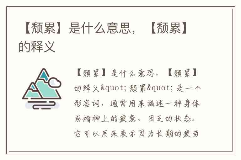 "颓累"是一个形容词,通常用来描述一种身体或精神上的疲惫、困乏的状态。它可以用来表示因为长期的疲劳、压力或无力感而导致的心情低落、消沉或疲惫不堪。