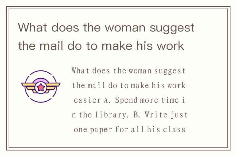 What does the woman suggest the mail do to make his work easier A. Spend more time in the library. B. Write just one paper for all his classes. C. Drop one of his courses. D. Write his papers on closely related topics.