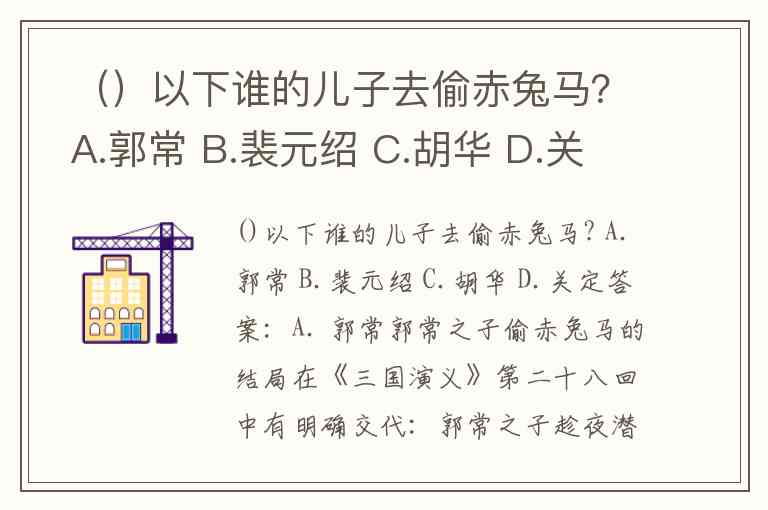 ()以下谁的儿子去偷赤兔马? A.郭常 B.裴元绍 C.胡华 D.关定