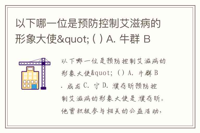 以下哪一位是预防控制艾滋病的形象大使" ( ) A. 牛群 B. 成龙 C. 宁 D. 濮存昕