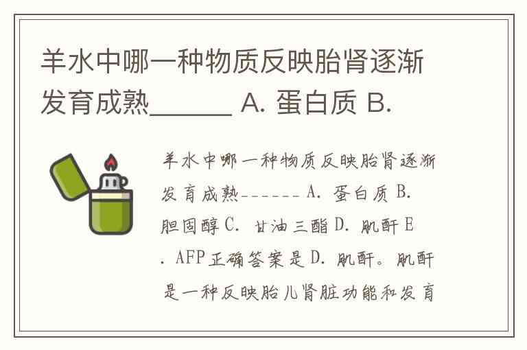 羊水中哪一种物质反映胎肾逐渐发育成熟______ A. 蛋白质 B. 胆固醇 C. 甘油三酯 D. 肌酐 E. AFP