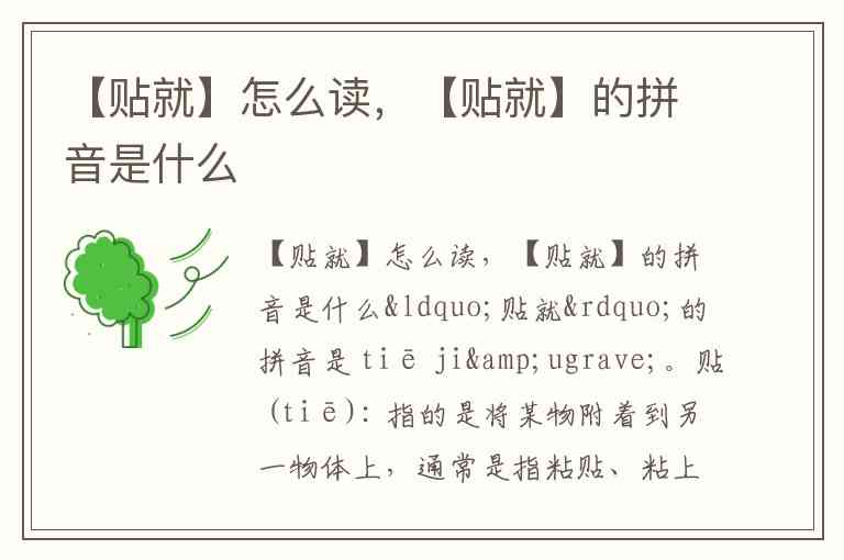 你提到的“贴就”可能是某种方言、口语表达或是特殊的词组,能不能提供更多的上下文,帮助我更准确地理解呢?