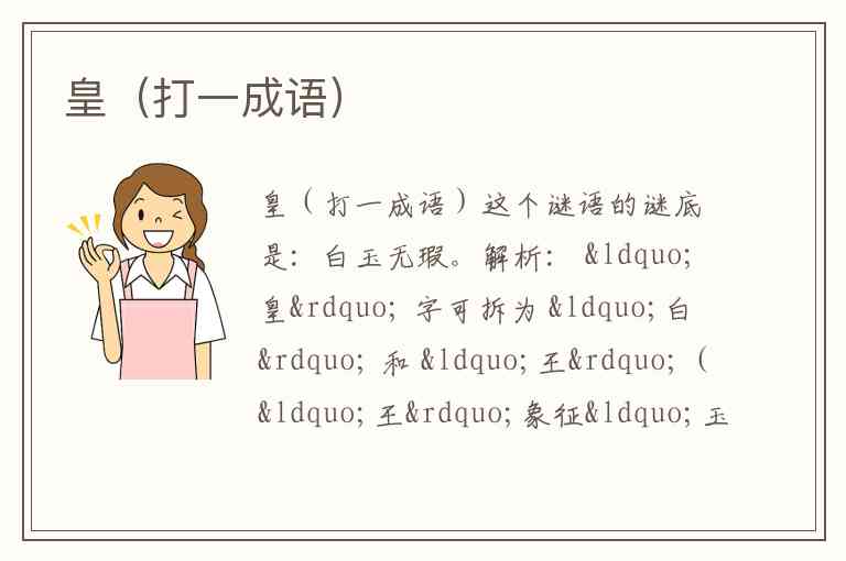 解析: “皇” 字可拆为 “白” 和 “王”(“王”象征“玉”)。
