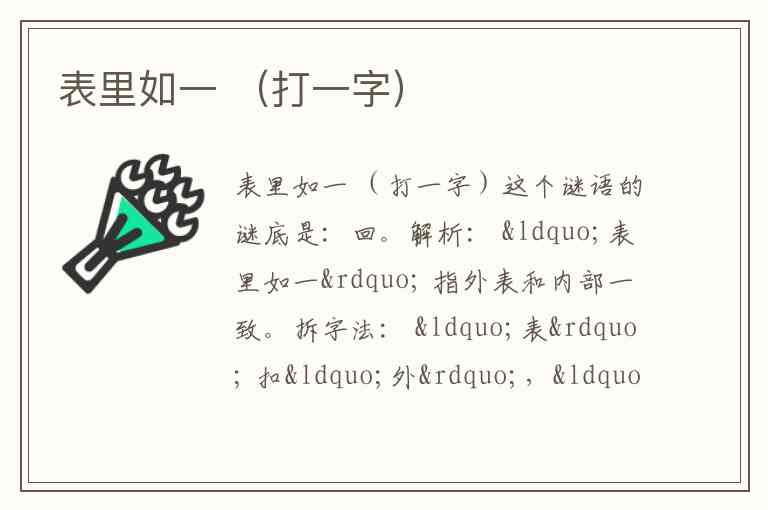 字形上,“回”字由“外框”和“内框”组成,且结构完全一致(口套口),正符合“表里如一”。