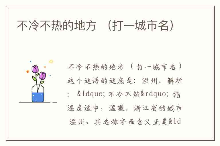 浙江省的城市 温州,其名称字面含义正是“温暖的州”,与谜面双关契合。