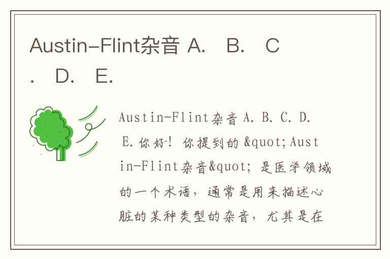 你好!你提到的 "Austin-Flint杂音" 是医学领域的一个术语,通常是用来描述心脏的某种类型的杂音,尤其是在二尖瓣反流的情况下。它是一种特定类型的心脏杂音,可能会出现在左心室与左心房之间的二尖瓣发生异常的情况时。