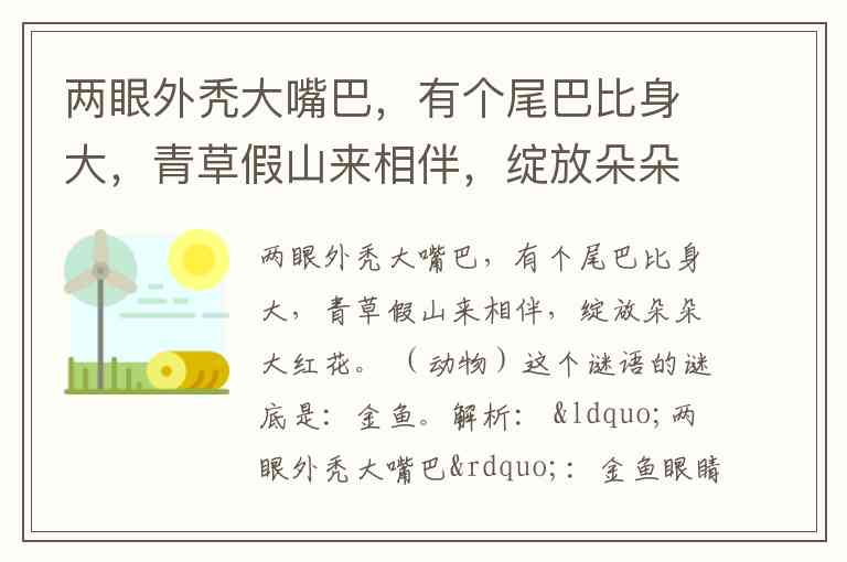 两眼外秃大嘴巴,有个尾巴比身大,青草假山来相伴,绽放朵朵大红花。 (动物)