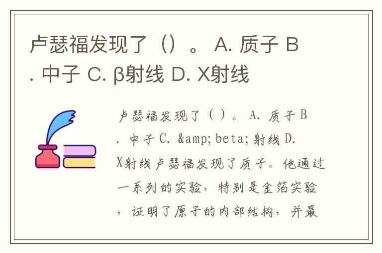 卢瑟福发现了()。 A. 质子 B. 中子 C. β射线 D. X射线