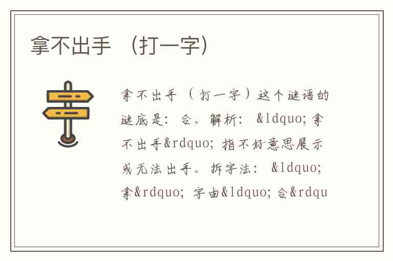 因此,“拿不出手”=“拿”-“手”=“合”。