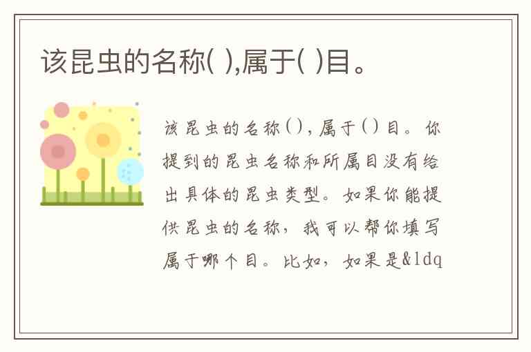 你提到的昆虫名称和所属目没有给出具体的昆虫类型。如果你能提供昆虫的名称,我可以帮你填写属于哪个目。比如,如果是“蜜蜂”,它属于“膜翅目”;如果是“蝴蝶”,它属于“鳞翅目”。你有具体的昆虫名称吗?