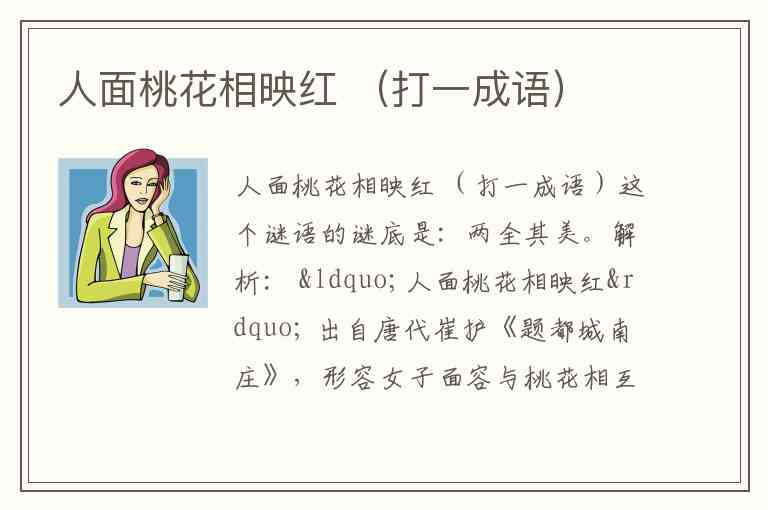 成语 “两全其美” 本义指做事顾全双方,使都得到好处,但此处别解为 “人与桃花两者皆美”,与诗句意境双关呼应。