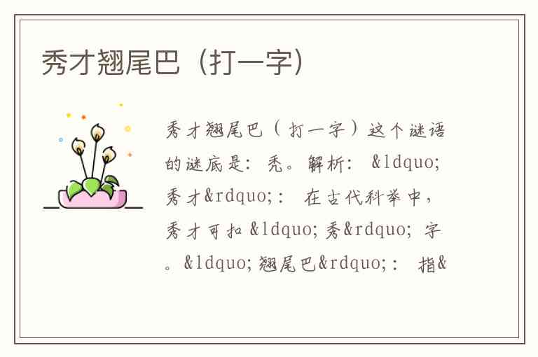 解析: “秀才”: 在古代科举中,秀才可扣 “秀” 字。