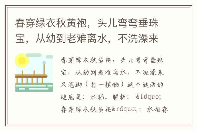 春穿绿衣秋黄袍,头儿弯弯垂珠宝,从幼到老难离水,不洗澡来只泡脚(打一植物)