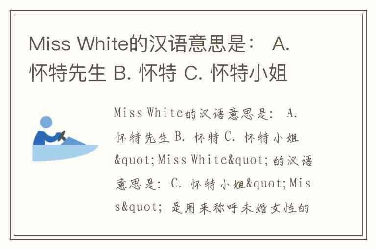 Miss White的汉语意思是: A. 怀特先生 B. 怀特 C. 怀特小姐