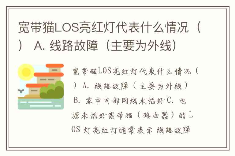 宽带猫LOS亮红灯代表什么情况() A. 线路故障(主要为外线) B. 家中内部网线未插好 C. 电源未插好