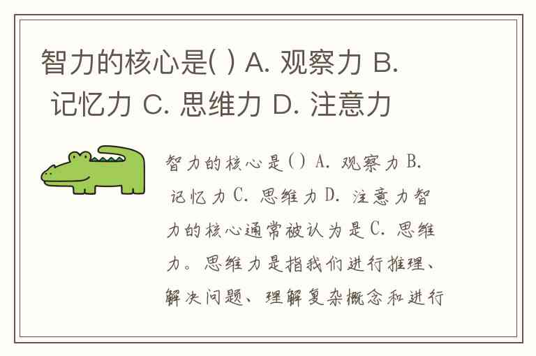 智力的核心是( ) A. 观察力 B. 记忆力 C. 思维力 D. 注意力