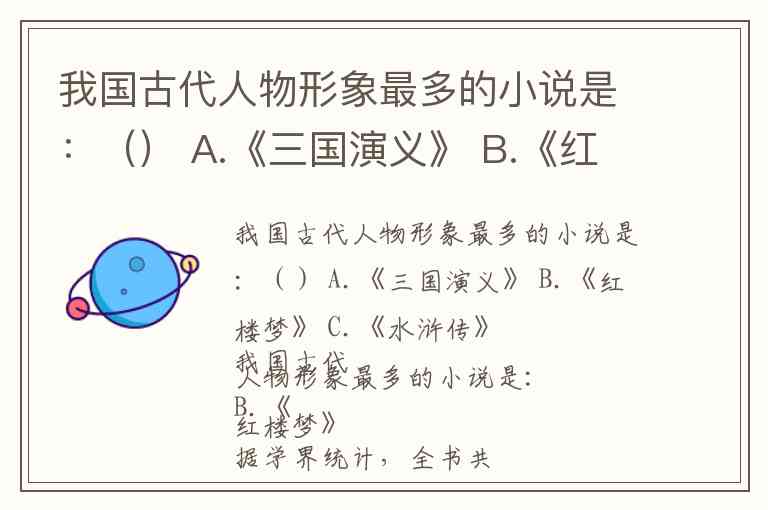 我国古代人物形象最多的小说是:() A.《三国演义》 B.《红楼梦》 C.《水浒传》