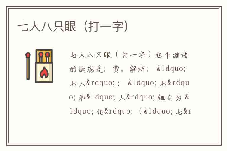 因此,“七人八只眼”=“化”+“贝”=“货”。