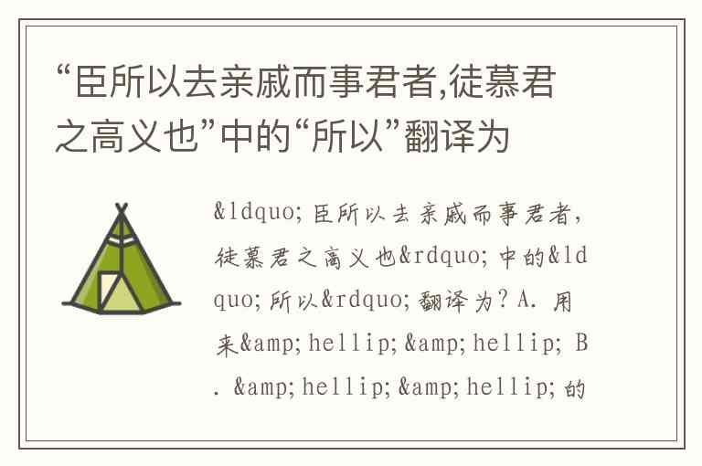 “臣所以去亲戚而事君者,徒慕君之高义也”中的“所以”翻译为? A. 用来…… B. ……的原因 C. 所以 D. 不译