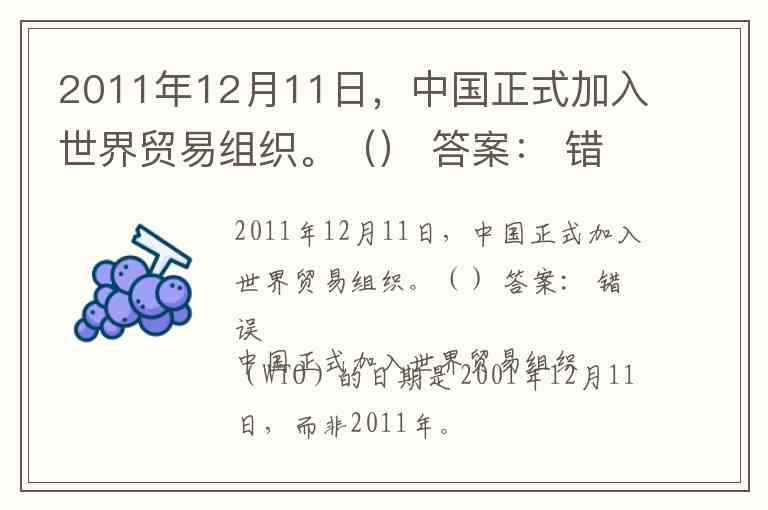 2011年12月11日,中国正式加入世界贸易组织。() 答案: 错误