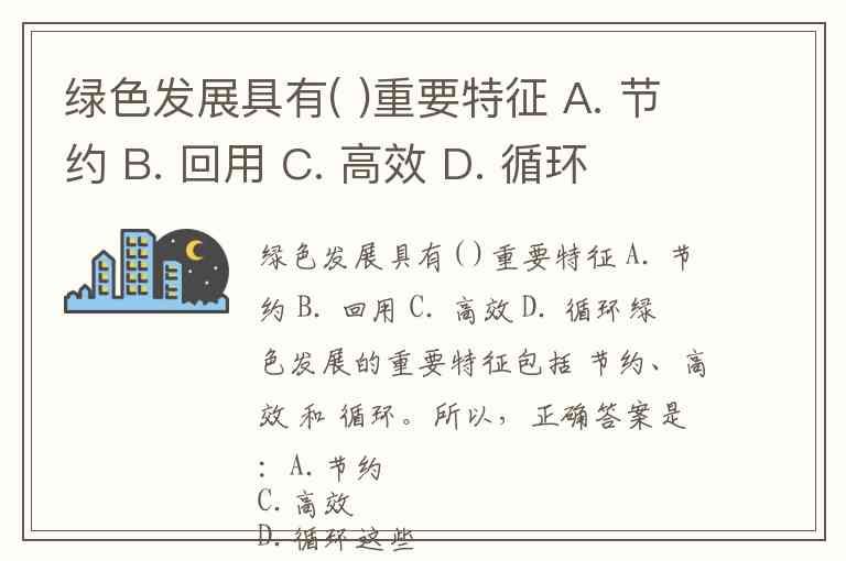 绿色发展具有( )重要特征 A. 节约 B. 回用 C. 高效 D. 循环