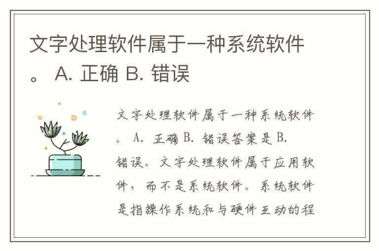文字处理软件属于一种系统软件。 A. 正确 B. 错误