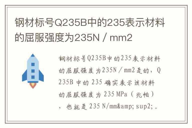 简单来说,Q235B 的屈服强度是 235 MPa,意味着该钢材在受力达到 235 MPa 时会开始发生永久变形。