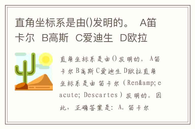 直角坐标系是由()发明的。 A笛卡尔 B高斯 C爱迪生 D欧拉
