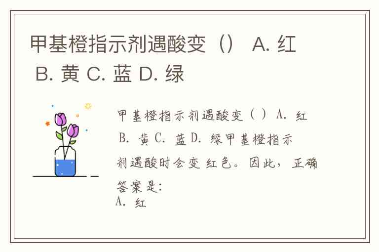 甲基橙指示剂遇酸变() A. 红 B. 黄 C. 蓝 D. 绿