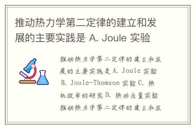 推动热力学第二定律的建立和发展的主要实践是 A. Joule 实验 B. Joule-Thomson 实验 C. 热机效率的研究 D. 热功当量实验