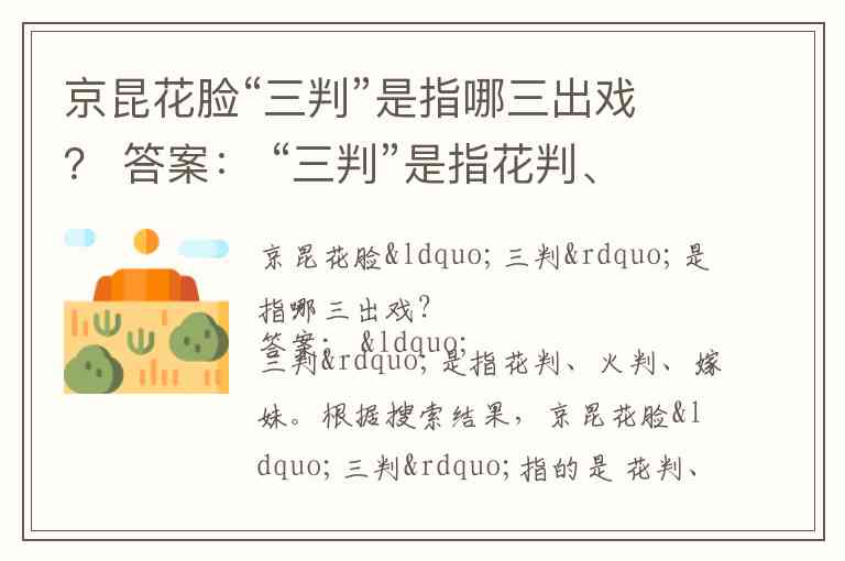 根据搜索结果,京昆花脸“三判”指的是 花判、火判 和 嫁妹 这三出剧目