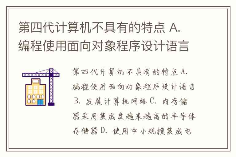 第四代计算机不具有的特点 A. 编程使用面向对象程序设计语言 B. 发展计算机网络 C. 内存储器采用集成度越来越高的半导体存储器 D. 使用中小规模集成电路