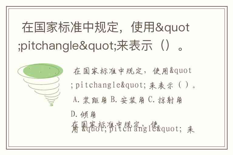 在国家标准中规定,使用"pitchangle"来表示()。 A.桨距角 B.安装角 C.掠射角 D.倾角
