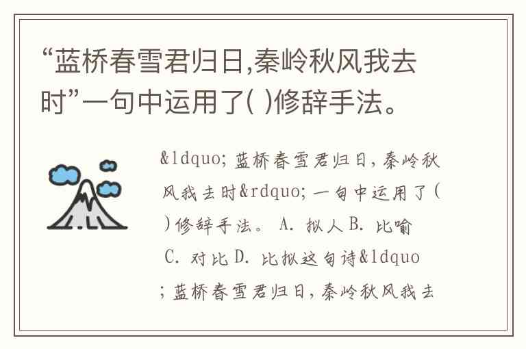 “蓝桥春雪君归日,秦岭秋风我去时”一句中运用了( )修辞手法。 A. 拟人 B. 比喻 C. 对比 D. 比拟