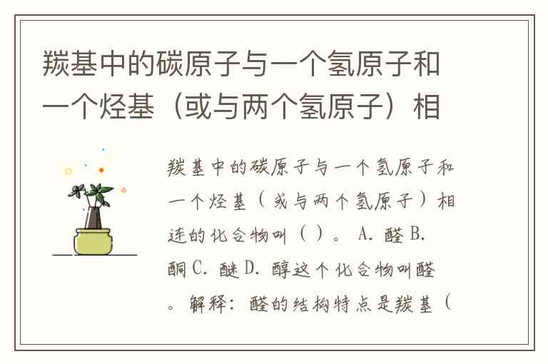 解释:醛的结构特点是羰基(C=O)中的碳原子与一个氢原子和一个烃基(如甲基、乙基等)相连,或者与两个氢原子相连。在问题中的描述正是符合这种结构特征。