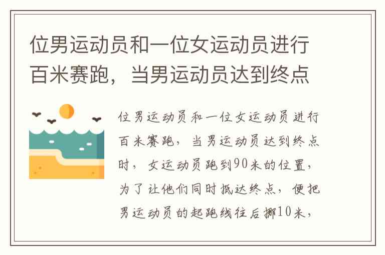 男运动员在百米赛跑中先到达终点,而女运动员在男运动员到达时跑了90米。