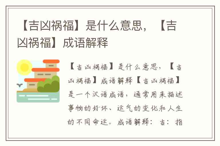 【吉凶祸福】是一个汉语成语,通常用来描述事物的好坏、运气的变化和人生的不同命运。