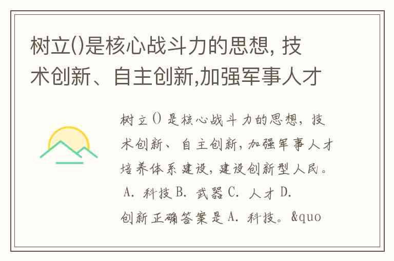 树立()是核心战斗力的思想, 技术创新、自主创新,加强军事人才培养体系建设,建设创新型人民。 A. 科技 B. 武器 C. 人才 D. 创新