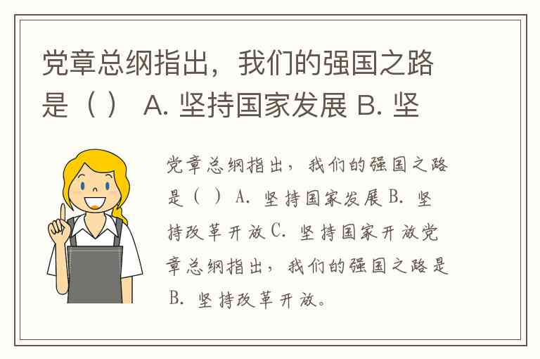 党章总纲指出,我们的强国之路是( ) A. 坚持国家发展 B. 坚持改革开放 C. 坚持国家开放