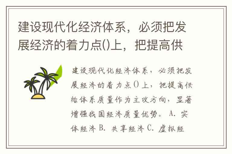 建设现代化经济体系,必须把发展经济的着力点()上,把提高供给体系质量作为主攻方向,显著增强我国经济质量优势。 A. 实体经济 B. 共享经济 C. 虚拟经济 D. 国民经济答案