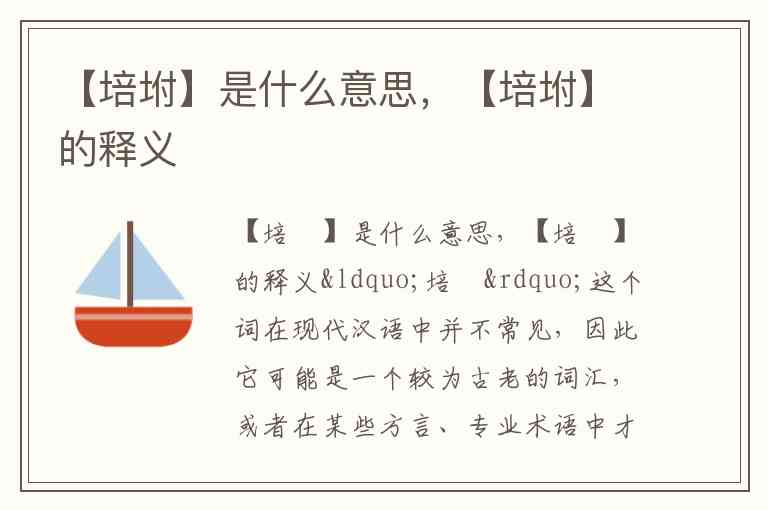 “培坿”这个词在现代汉语中并不常见,因此它可能是一个较为古老的词汇,或者在某些方言、专业术语中才有使用。不过,如果我们将其分开来看: