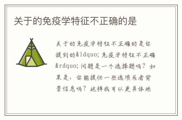 你提到的“免疫学特征不正确”问题是一个选择题吗?如果是,你能提供一些选项或者背景信息吗?这样我可以更具体地帮助你分析。免疫学特征的错误可能涉及免疫系统的基本原理、免疫反应、免疫细胞功能等方面。