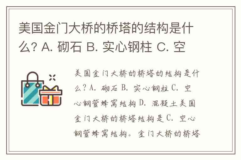 美国金门大桥的桥塔的结构是什么? A. 砌石 B. 实心钢柱 C. 空心钢管蜂窝结构 D. 混凝土