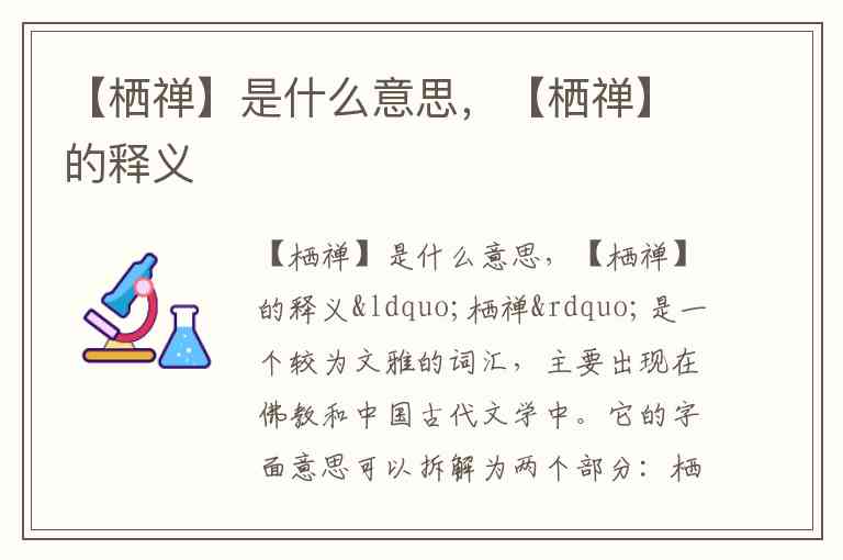 “栖禅”是一个较为文雅的词汇,主要出现在佛教和中国古代文学中。它的字面意思可以拆解为两个部分: