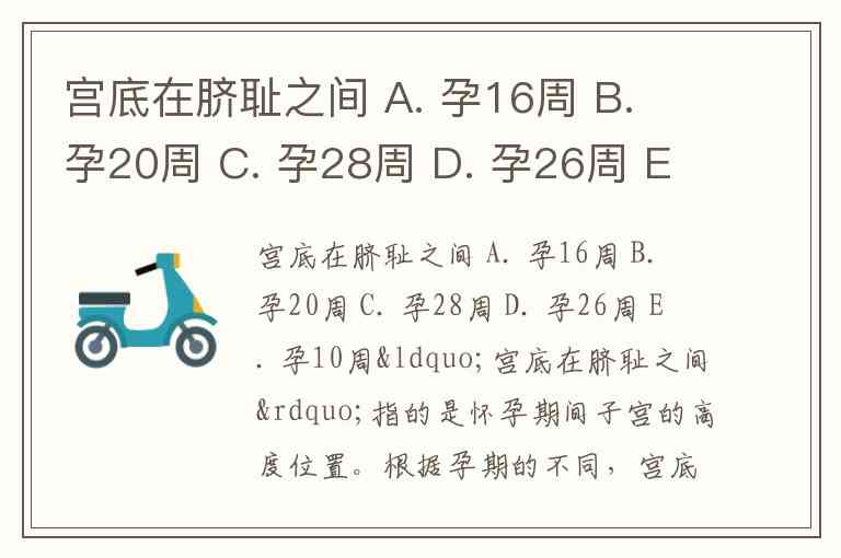 宫底在脐耻之间 A. 孕16周 B. 孕20周 C. 孕28周 D. 孕26周 E. 孕10周