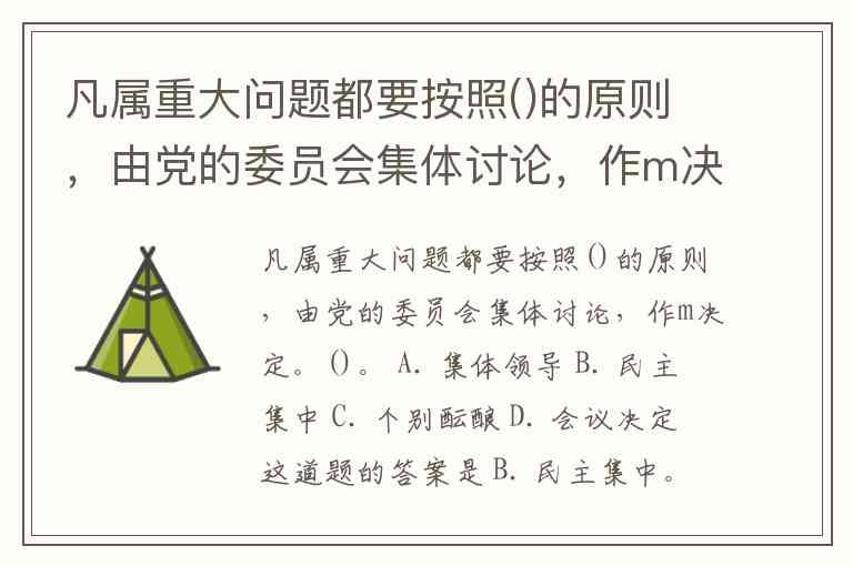 凡属重大问题都要按照()的原则,由党的委员会集体讨论,作m决定。()。 A. 集体领导 B. 民主集中 C. 个别酝酿 D. 会议决定