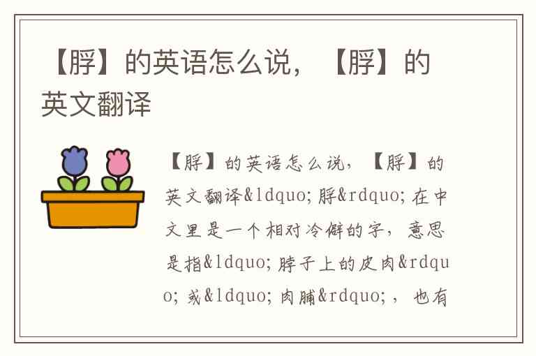 “脬”在中文里是一个相对冷僻的字,意思是指“脖子上的皮肉”或“肉脯”,也有指“脯肉”或“脖肉”的意思。它不是一个常见的词汇,因此没有一个直接对应的常见英语词汇。